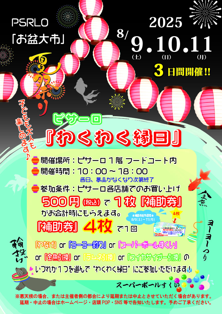 PSRLO《お盆大市》in“夏祭り”のお知らせ!