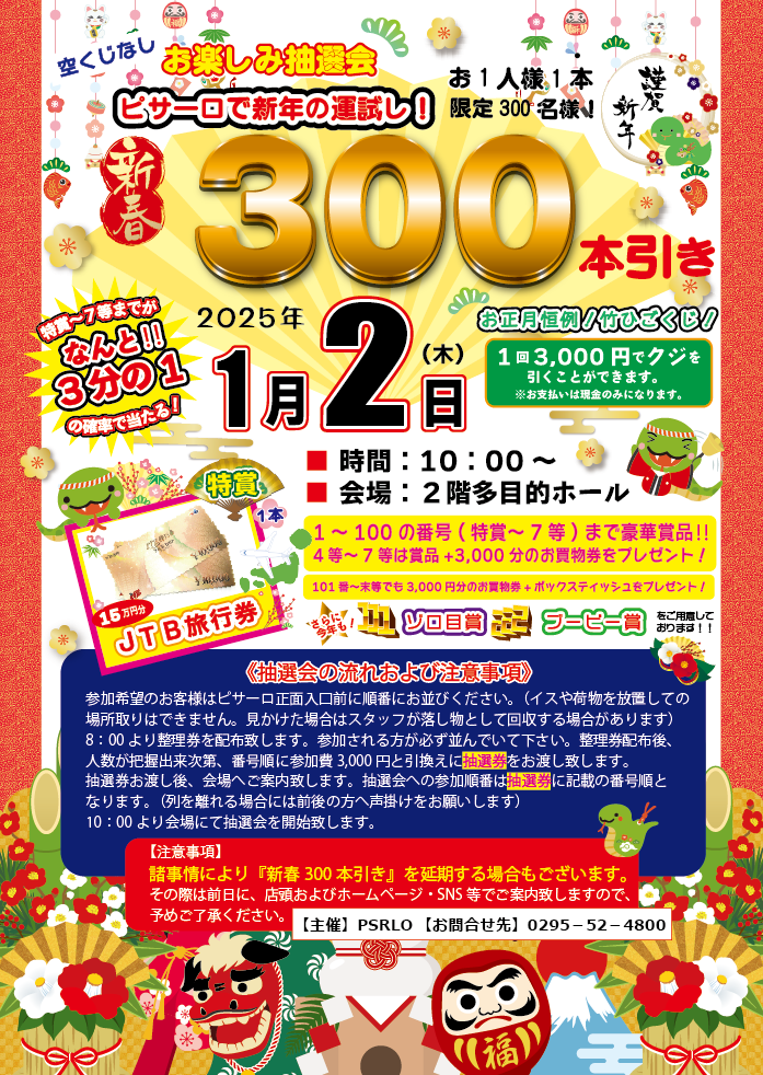 新春!お正月恒例【300本引き】開催のお知らせ!